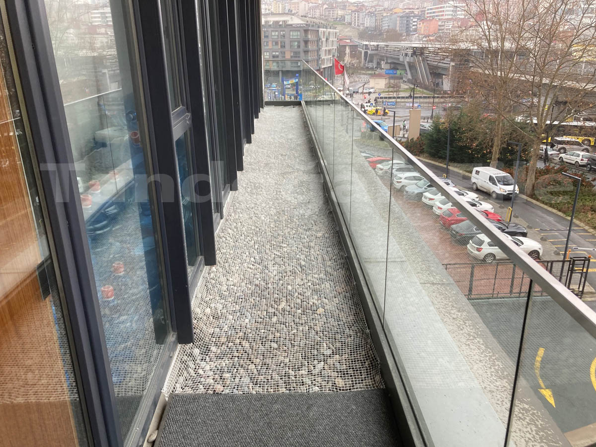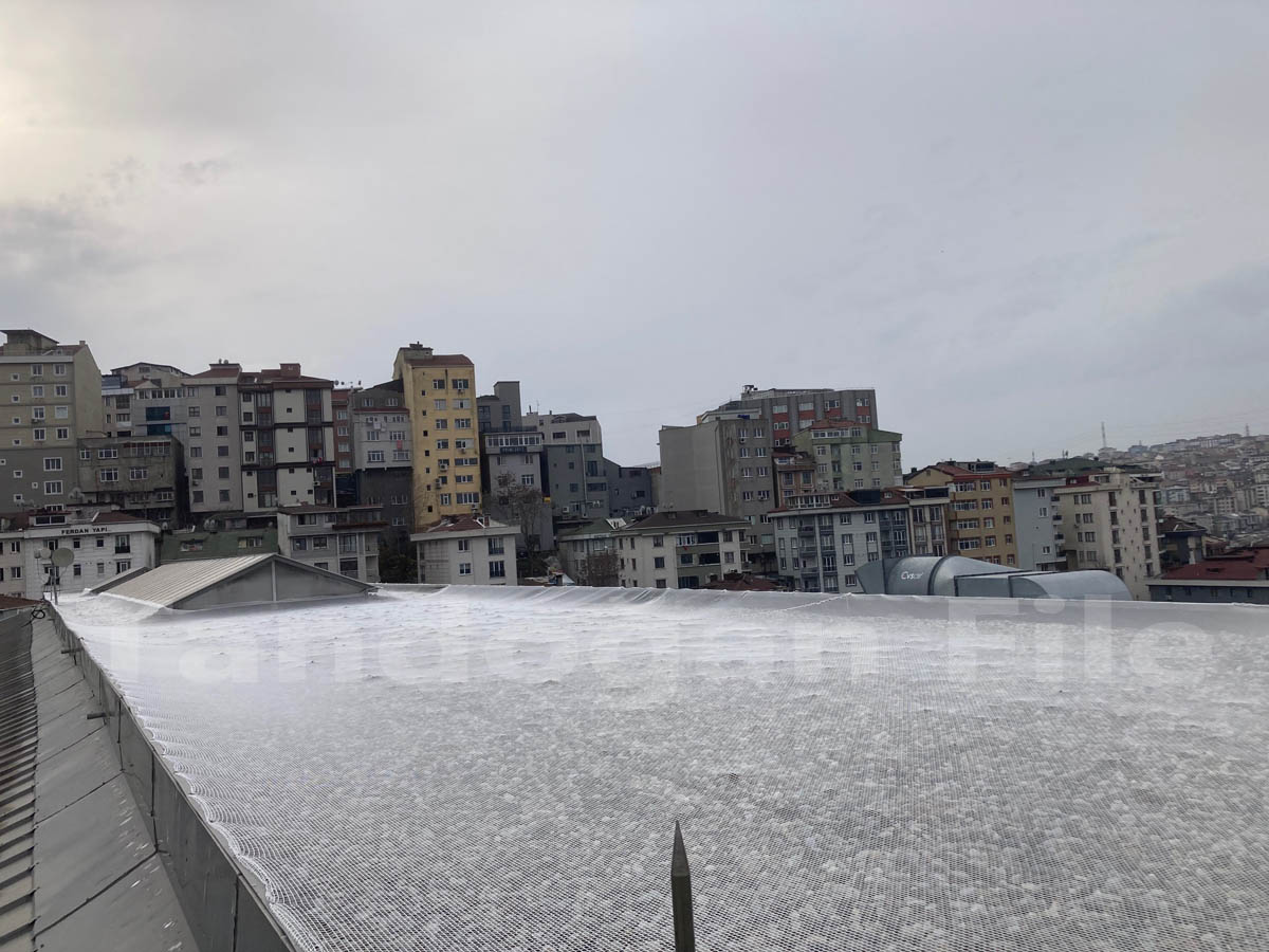 Sinpaş Flat Ofis firmasına ait bina üzerindeki taşları kuşlar gagaları ile alarak dışarıya atmaktaydılar. Çatı üzerine ve balkonların zeminine kuş filesi serilerek kuşların taşlara erişmesi engelledi.